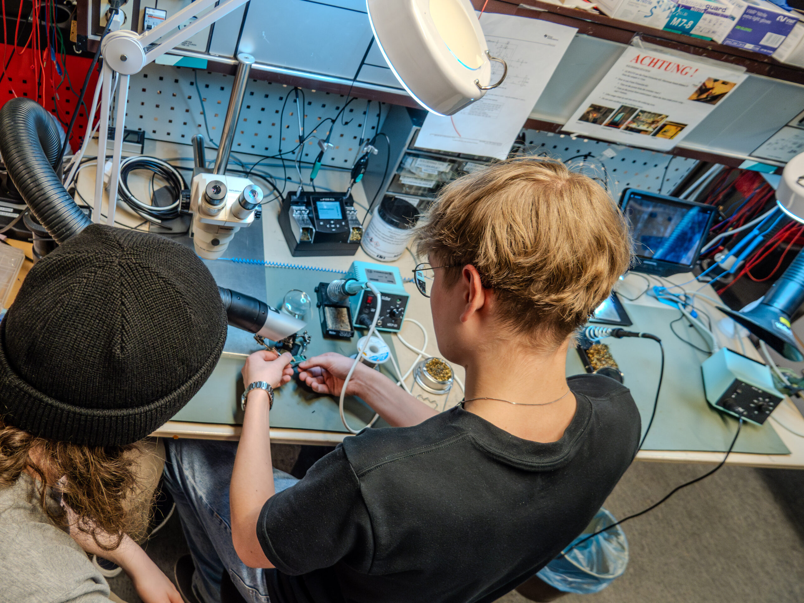 Kurssilla opiskelijat suunnittelevat laitteen kokoamisen, juottavat komponentit, sekä ohjelmoivat laitteiston. Laboratorion tiloja tarvitaan erityisesti juotosvaiheessa, koska vastaavia tiloja ei ole tarjolla lukiossa. Ohessa viime keväänä kurssille osallistuneen Einarin näkemys tapahtumista. Kaikki loput kuvat ovat Einarin ottamia.